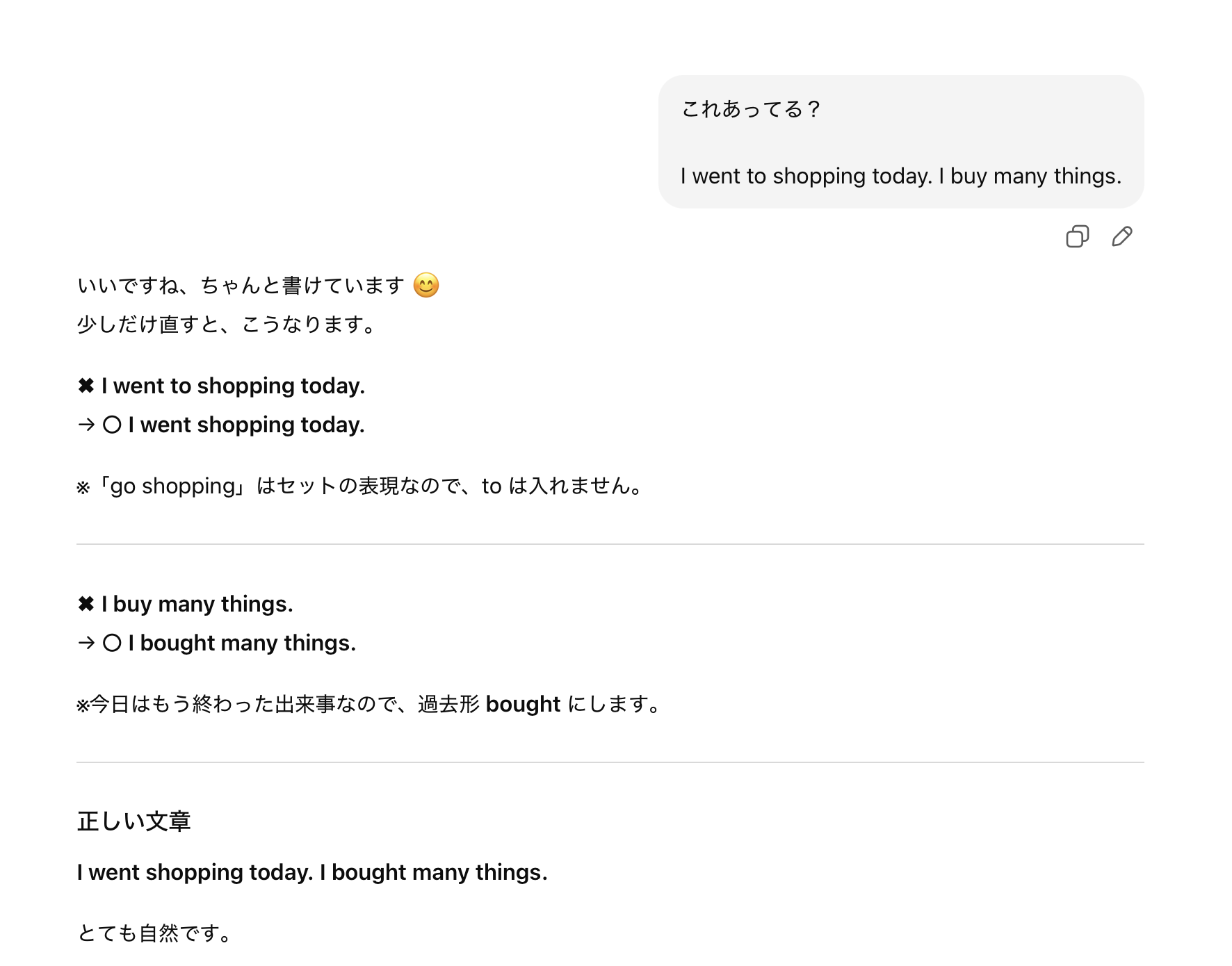 AIなので、たまにおかしいことを言う時もありますが(笑)、英語日記の添削くらいなら、頼りになる存在です。
